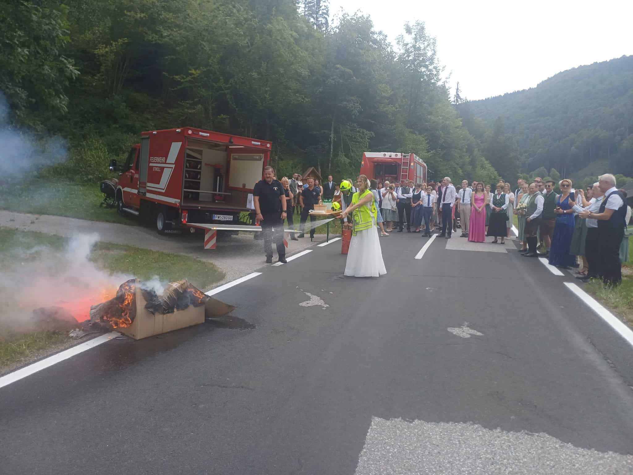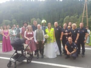 In den frühen Morgenstunden ging es zu unserem Feuerwehrkameraden HFM Patrick Roth, um ihn für die bevorstehende Hochzeit aufzuwecken. Am Nachmittag sperrten die Kameradinnen und Kameraden den Weg zur Kirche ab, wo seine Braut Marie und der Bräutigam noch eine Aufgabe lösen mussten. Wir, die Feuerwehr Stiwoll, bedanken uns bei Marie und Patrick für die Einladung zum Buschenschank Lärchegg-Schmölzer und die perfekte Jause. Wir wünschen dem Brautpaar alles Gute auf ihrem gemeinsamen Weg.