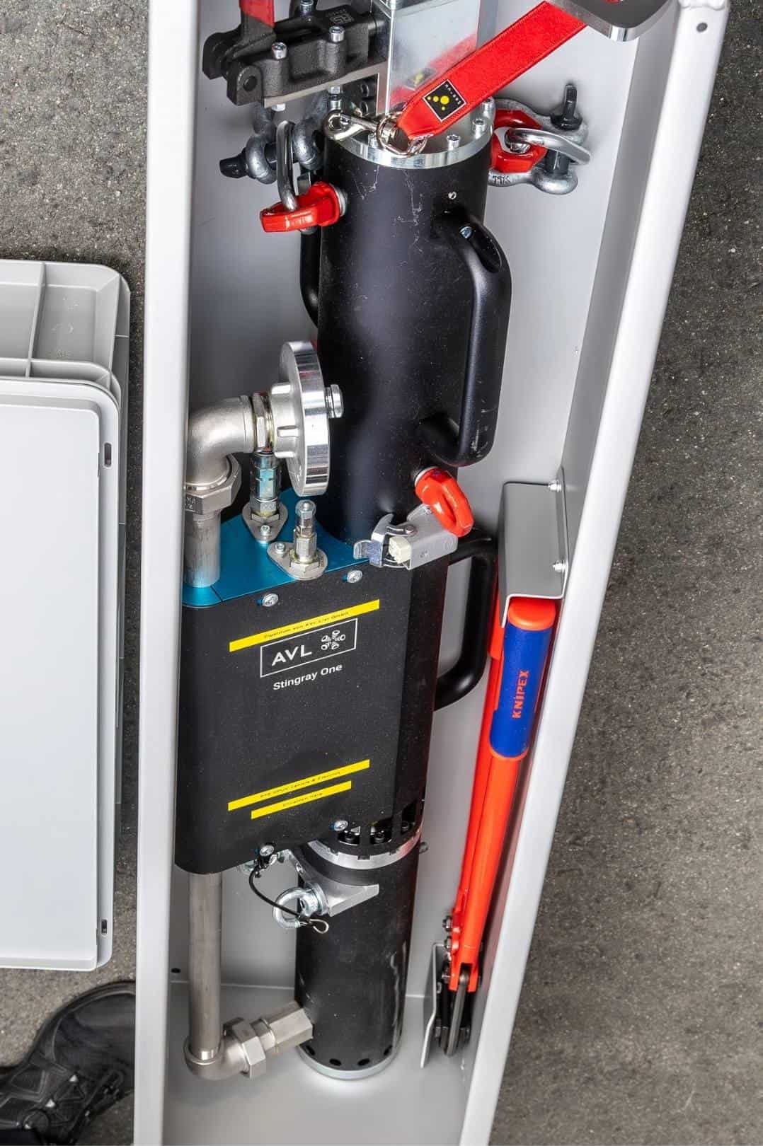 Bei der letzten Kommandanten-Dienstbesprechung des Abschnitts 6 bei der Feuerwehr Eisbach-Rein ist das neue Kommandofahrzeug (KDO) der Feuerwehr Gratkorn den Kommandanten und Stellvertretern vorgestellt worden. An Bord ist auch STINGRAY ONE, das ist ein spezielles Gerät zum Löschen von Batterien von Elektrofahrzeugen.