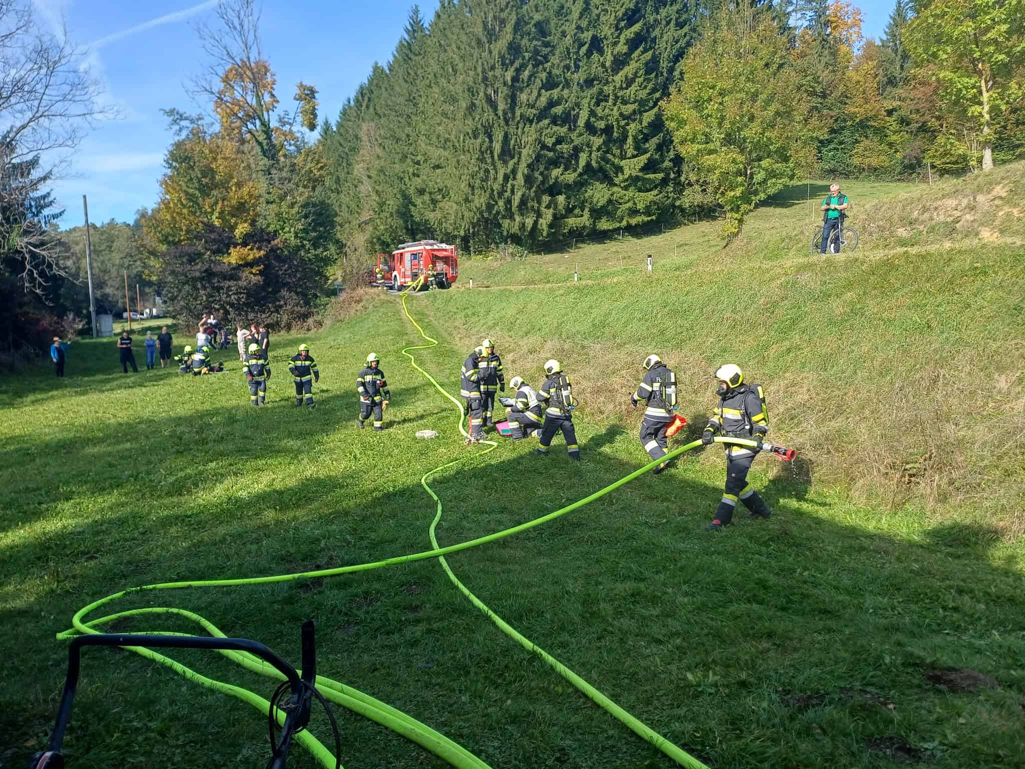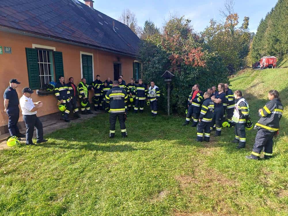 Heute, 11.10. fand die Abschlussübung der Feuerwehr Stiwoll statt. Beübt wurde ein Zimmerbrand in einem Einfamilienhaus. Dabei unterstützte uns unsere Nachbarfeuerwehr St. Oswald/St. Bartholomä. Als Übungsbeobachter fungierten unser ABI Hannes Koch sowie BM Mario Brucher.