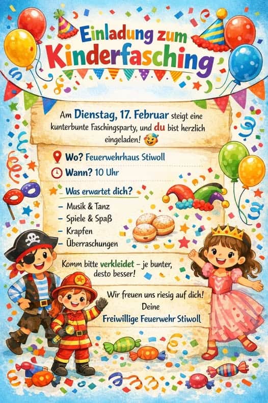 wir freuen uns euch am Faschingdienstag, 17. Februar 2025 ins Feuerwehrhaus einzuladen! ![]()